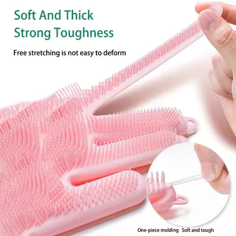 - 2-in-1 design: Combination of silicone gloves and cleaning scrubber